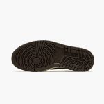 The Travis Scott x Air Jordan 1 Low “Reverse Mocha” is a collaboration between the hip-hop artist and Jordan Brand on the low-top lifestyle shoe that “reverses” the color block of the duo’s original Jordan 1 Low collaboration from 2019. Released in July 2022, the “Reverse Mocha” features the same color block as Travis and Jordan Brand’s “Mocha” or “Cactus Jack” Jordan 1 Low, albeit in a flipped color coordination. The perforated toe, mid-panel, and collar are designed in mocha (brown) nubuck. White leather overlays on the toe cap, forefoot, eyelets, and heel contrast the upper’s earth tone base. A backwards cream-colored leather Swoosh, a signature branding element to many of Travis’s sneaker projects, appears on the sides. A smiley face logo is embroidered in red on the left heel while a classic “Wings” logo is embroidered in red on the right heel. Release date: July 21, 2022