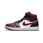 The Air Jordan 1 Mid “Bred Toe” is the mid-top interpretation of a popular color scheme on the Jordan 1 High. The “Bred Toe” Air Jordan 1 Mid features a slightly darker shade of red than its high-top relative. The construction includes a perforated red leather toe box that is contrasted by black leather overlays on the toe cap, eyelets, collar and heel. A crisp white leather mid-panel features a red leather Swoosh with additional red branding appearing on the collar. Jordan Brand laces the “Bred Toe” mid-top with a classic black nylon tongue that includes red Jumpman branding on the tongue tab. Finishing off the look is a clean white rubber midsole that is contrasted by a bold red outsole.