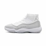 The Women’s Air Jordan 11 “Metallic Silver” is an opulent, women’s-only colorway of Michael Jordan’s iconic mid-90s shoe. Designed with luxury in mind, the “Metallic Silver” Jordan 11 features a stark white leather base on the collar with an overlapping metallic Jumpman giving off an aura of high-end styling. The shoe’s signature patent leather mudguard is reimagined with a shiny silver-coated finish. White ballistic nylon on the eyelets and collar completes the minimally-styled upper. A white midsole, carbon fiber plate, and semi-translucent outsole with a white Jumpman completes the look.