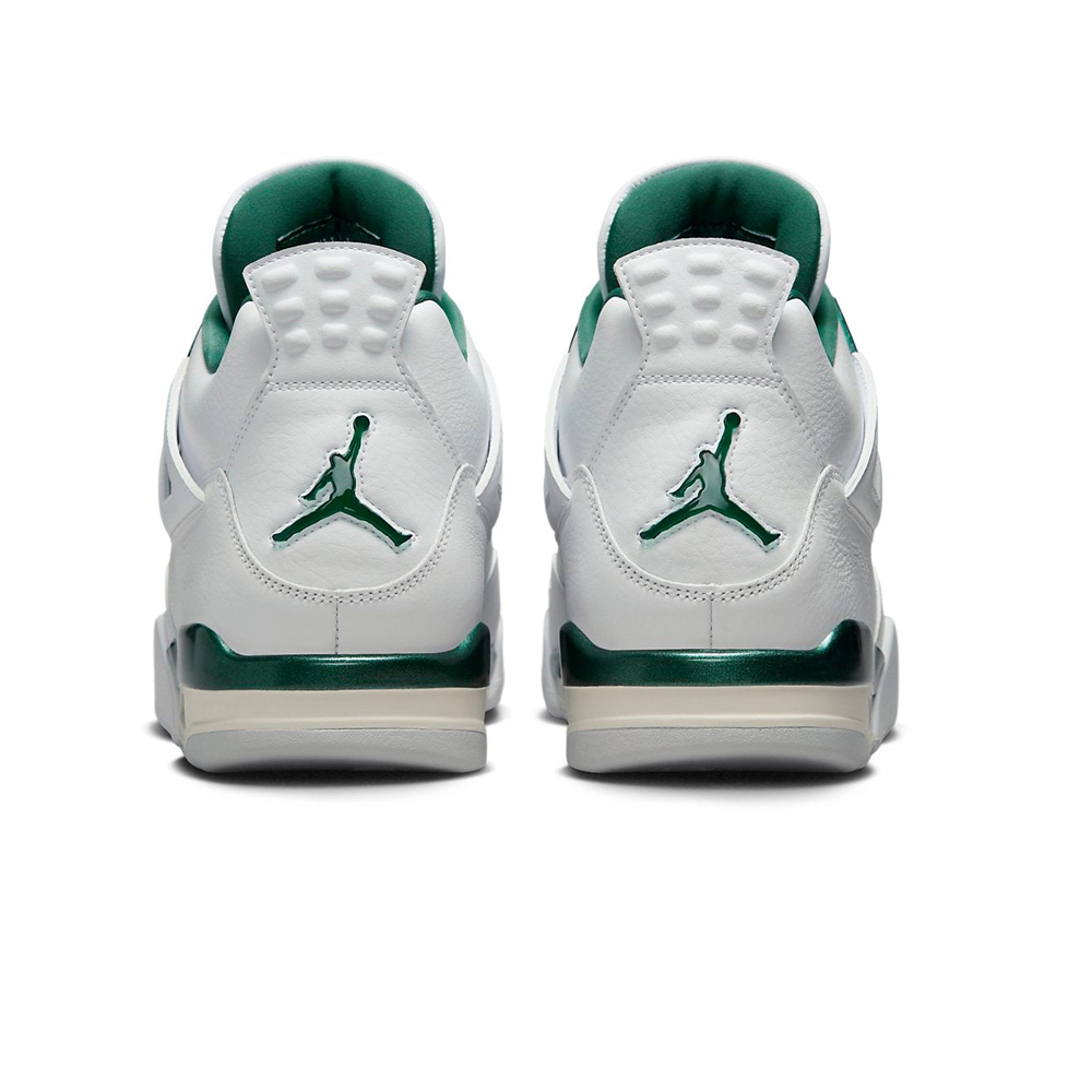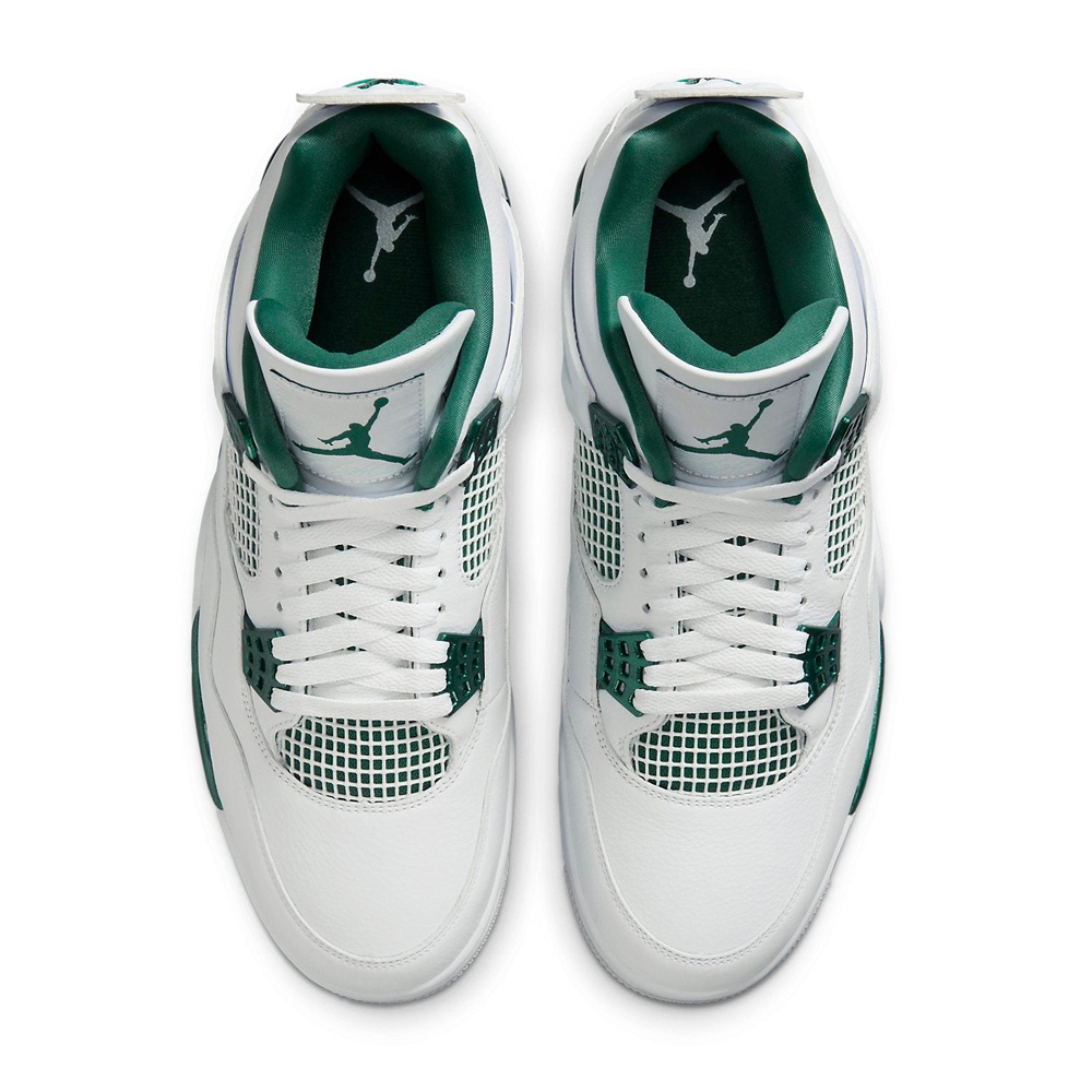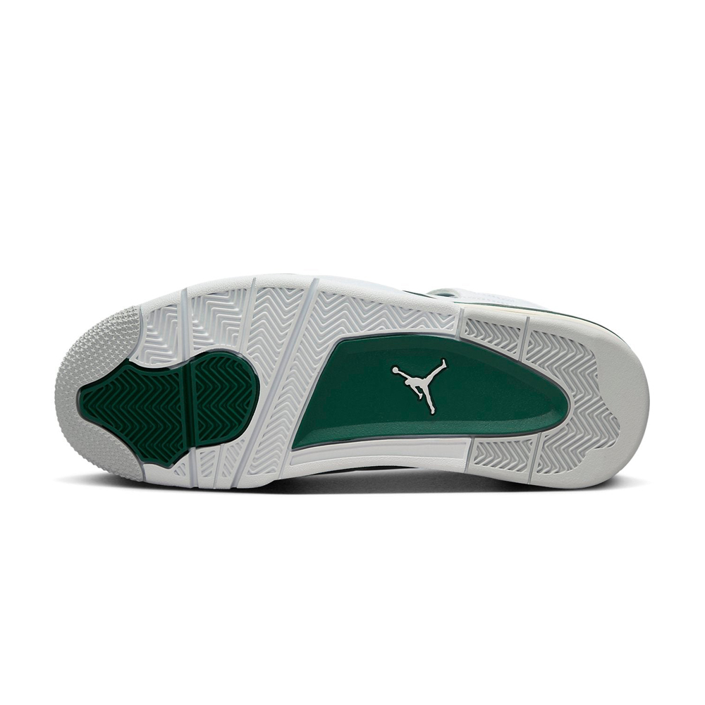 The Air Jordan 4 Retro ‘Oxidized Green’ is one of the most anticipated sneaker releases of the Summer/Fall 2024 season. Pairing a clean white and sail with an attractive tint of green, this shoe features a crisp white leather upper, tonal quarter panel netting, and grey molded eyelets. Contrasting green accents adorn the support wings and back tab, marked with embossed Jumpman branding. An exposed Air-sole heel unit provides soft cushioning.