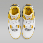 The AJ4 color palette expands with a bold new addition. The Vivid Sulfur accents bring a pop of color to even the brightest summer days, while the Coconut Milk rubber sole mellows everything out for a smooth finish.