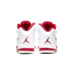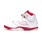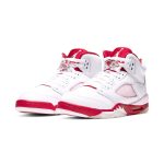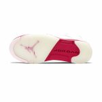 This Air Jordan 5 comes dressed in a White, Pink Foam, and Gym Red color combination. Looking closer it features White leather across the uppers while Pink Foam is applied to the netting on the panels, tongue, and on part of the midsole. Following we have Red on the top of the tongue, liner, and most of the midsole while a milky translucent outsole finishes the look.