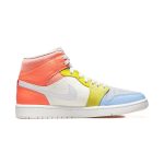 The upcoming Air Jordan 1 Mid “To My First Coach”, marked by its poignant greeting on the hangtag and a warming mix of pastels, is adding a third member to its family. Already previewed was the Air Jordan 1 Low “To My First Coach” and the Air Jordan 1 Zoom CMFT, each with the aforementioned add-on and the soft blue/yellow/crimson mix. Now, you can welcome the ubiquitous Air Jordan 1 Mid with the same execution. Aside from the attractive colorway, Jumpman blends a mix of suede, leathers, and a textured forefoot andd Swoosh – something of a blend between the classic elephant print and a stately marbling. A light mesh lining, matching tongue, and outsole in white achieve that made-for-summer look.