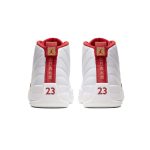 Jordan Brand welcomes with 2019 FIBA Basketball World Cup with the Air Jordan 12 “FIBA”, now available on StockX. FIBA (Originally known as the Fédération Internationale de Basketball Amateur) is an association of national organizations which governs the sport of basketball worldwide. Every four years, nations that are members of this organization compete for the World Cup. In 2017, Nike partnered with FIBA to become the official sponsor of the organization so it is fitting that Jordan pays tribute with this colorway. This AJ 12 is reminiscent of the existing “Rising Sun” colorway except it differs by displaying red detailing with gold accents. This design features a white leather upper detailed with different symbols from flags. Chinese text on the heel tab and the signature “TWO 3” embroidery on the tongue completes the design.