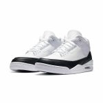 The Fragment Design x Air Jordan 3 is a collaboration between Hiroshi Fujiwara’s design studio and Jordan Brand on Michael Jordan’s third signature shoe. Rumored to originally be part of Fujiwara’s scrapped “The 10” collection, this collaborative Jordan 3 sports a simple color scheme of black and white, though it’s full of intricate details that make this one of the most appealing Jordan 3 colorways on the market. Starting with the upper, white tumbled leather appears on either side of the shoe. Smooth white leather can be found in a dotted design on both the collar and eyelets. Interestingly, Fragment removes the Jordan 3’s beloved elephant print mudguard in favor of moody smooth black leather. An embossed Fragment Design logo is located on the glossy black heel panel. Moreover, a tonal embroidered Jumpman is stitched onto the white leather tongue, and Fragment’s Double Bolt logo appears beneath the translucent heel overlay, which displays a traditional Jumpman emblem and black “Air” detailing.