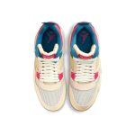 The Union x Air Jordan 4 “Guava Ice” is one of Summer 2020’s most coveted collaborations from Jordan Brand. Union, a Los Angeles streetwear, fashion, and lifestyle boutique, renewed its partnership with Jordan Brand following its monumental Air Jordan 1 collaboration from 2018 on two Jordan 4 colorways with a unique new construction. Beginning with the color scheme of “Guava Ice,” the upper features vintage-inspired yellow netting on the mid-panel and tongue. A sand colored brushed suede base appears on the mudguard, toe cap, and eyelets. White and red engineered mesh detailing dots the toe and collar, respectively. Pink plastic lace accenting clips and a translucent lace support clip add to the eccentric vibe of this shoe. A blue plastic heel clip with contrasting red “Nike Air” adds a classic touch to the decidedly contemporary look. The previously mentioned shortened tongue is actually folded over and stitched down per Union owner Chris Gibbs’ specifications. The wearer is able to remove the stitching to obtain a traditional Air Jordan 4 look.
